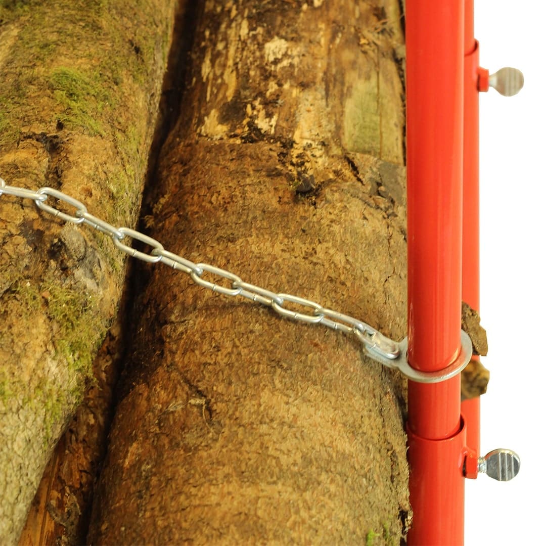 The Forest Master Bulk Log Stand is capable of safely securing multiple logs for the user to chainsaw, the logs are held in place by chains which prevent the logs from moving during cutting. The user can load up to 250KG* of logs for cutting.