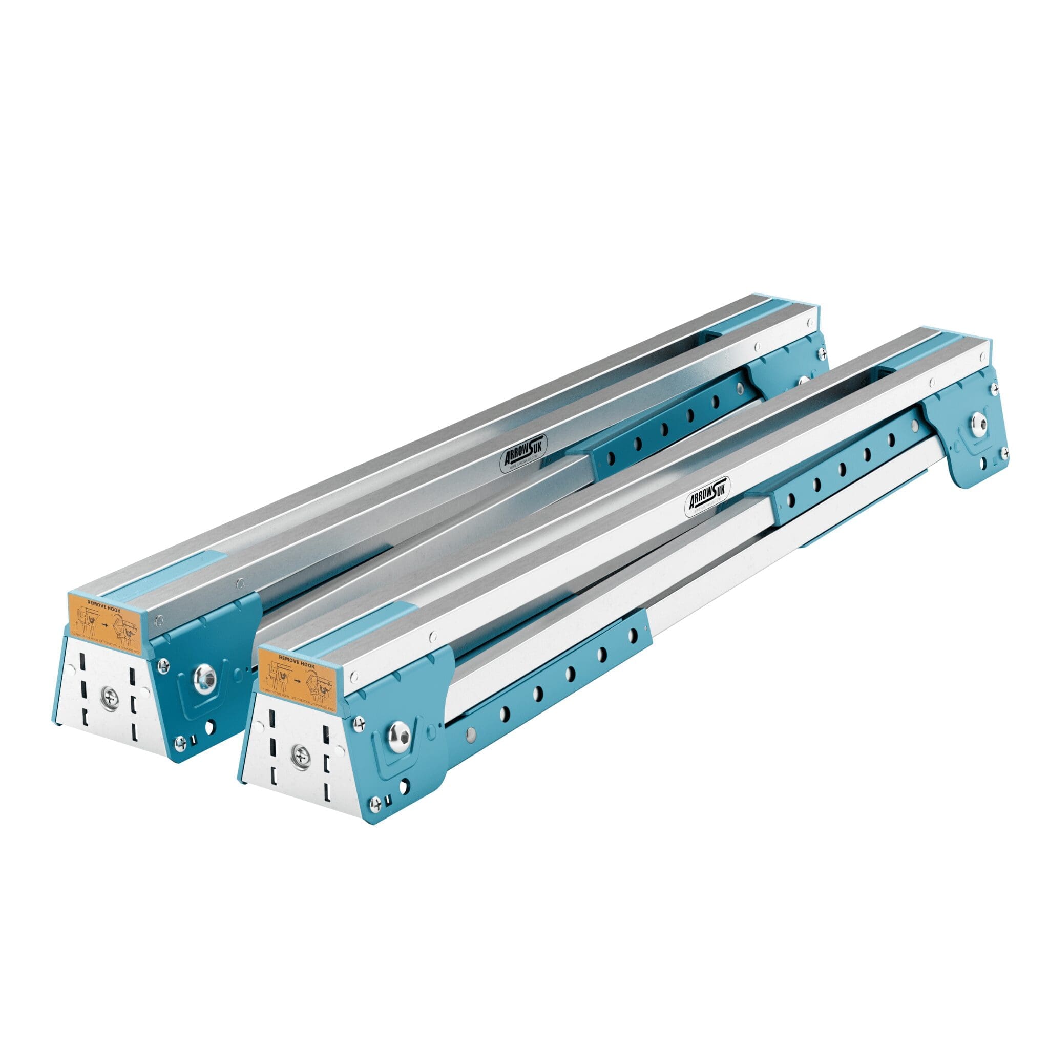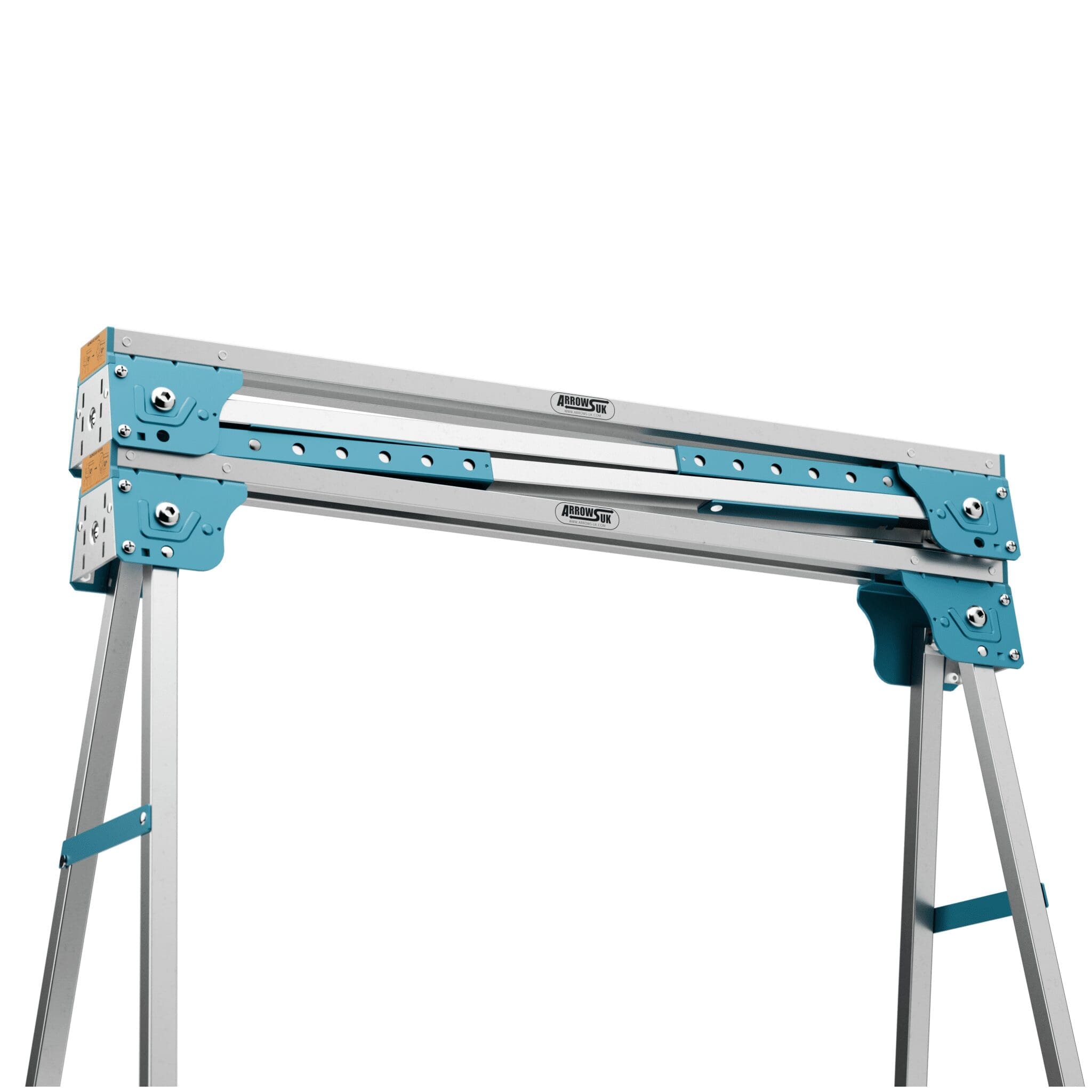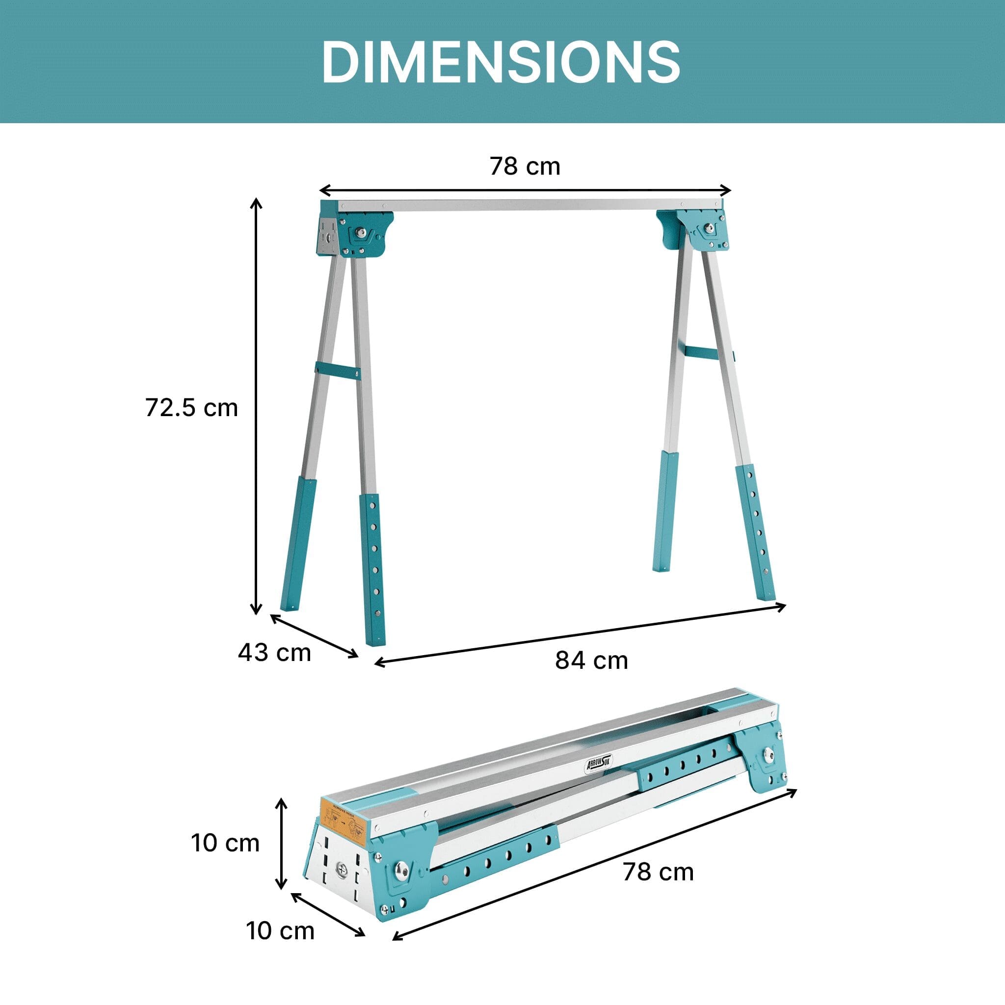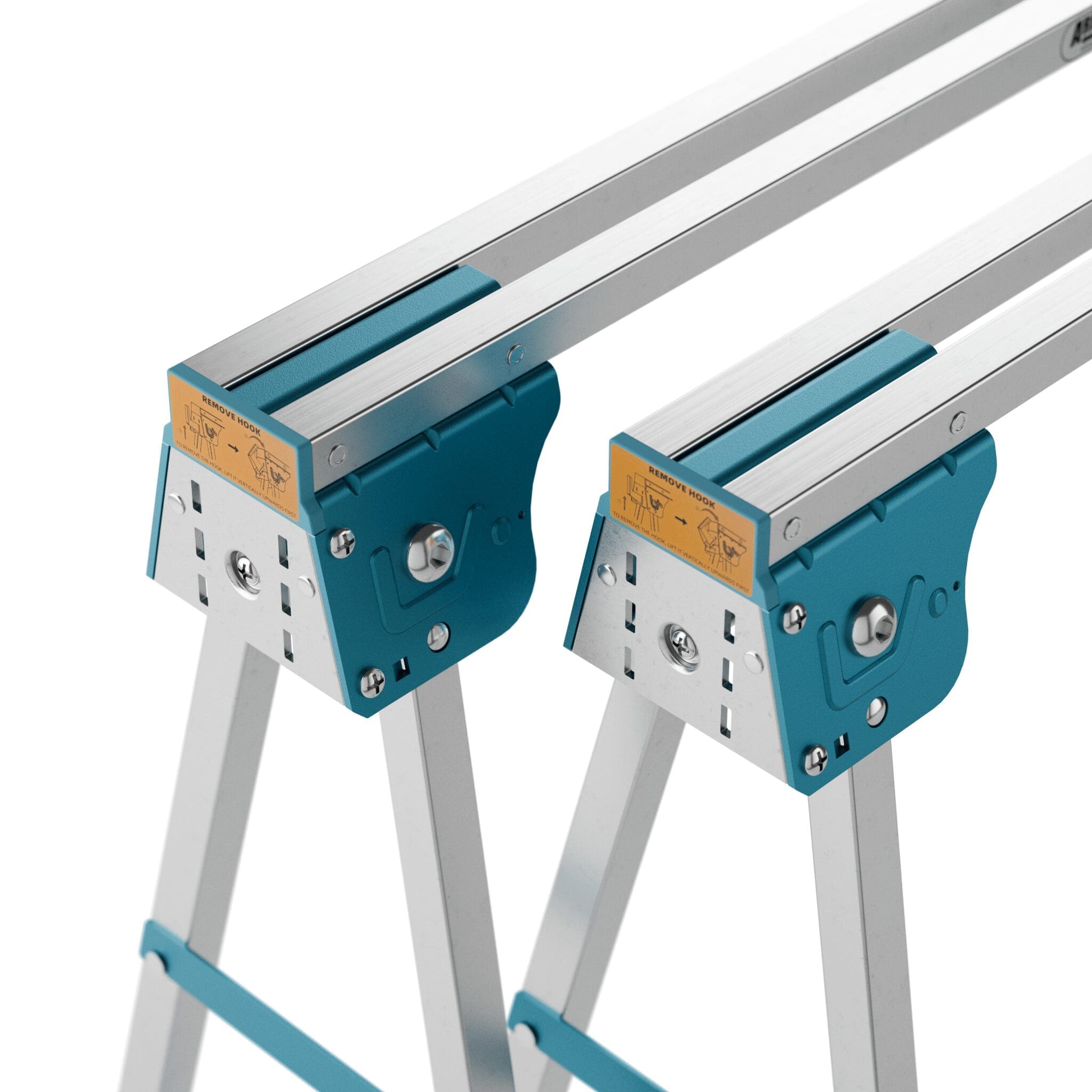 Bærbar strøm: Letvægts savbukke i aluminium, der kan foldes sammen til 78 × 10 × 10 cm, så de nemt kan opbevares i en varevogn eller et skur.