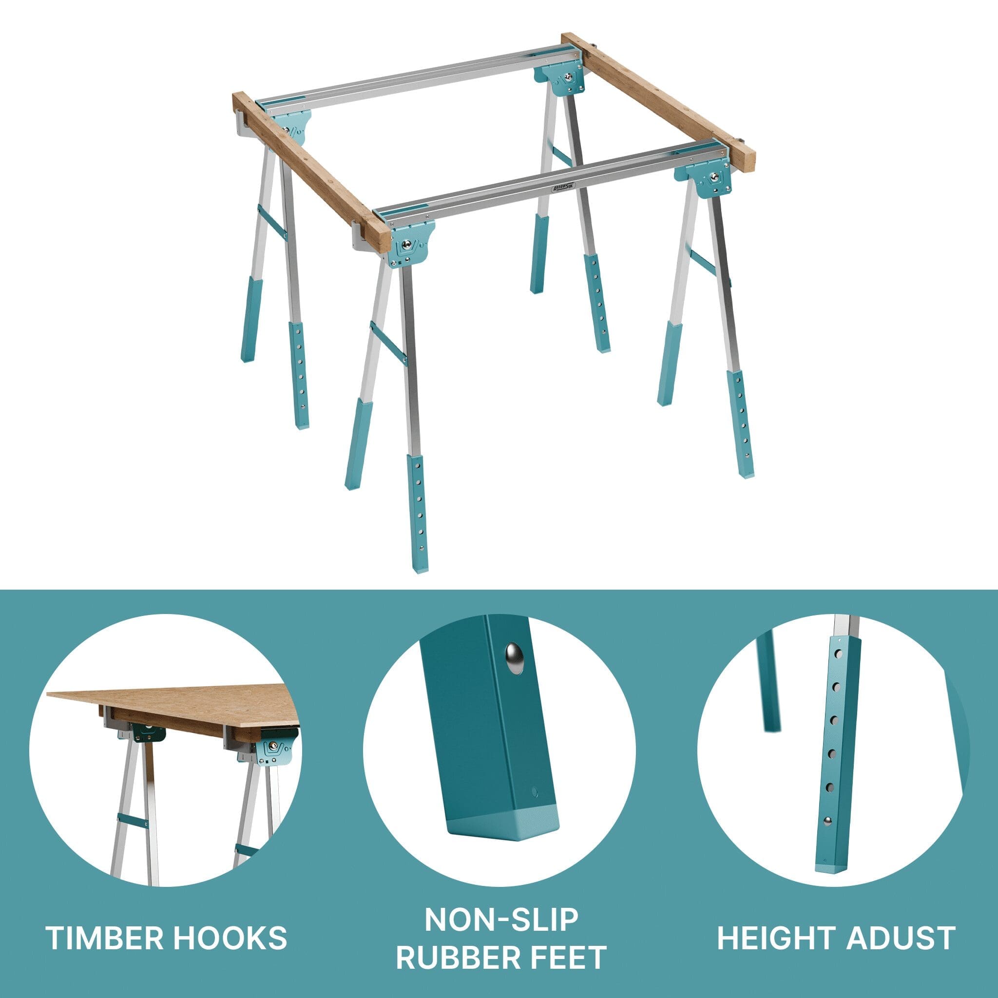 Par foldbare bukke – justerbare bukke med trækroge og skridsikre fødder | Bærbare arbejdsbænkstøtter