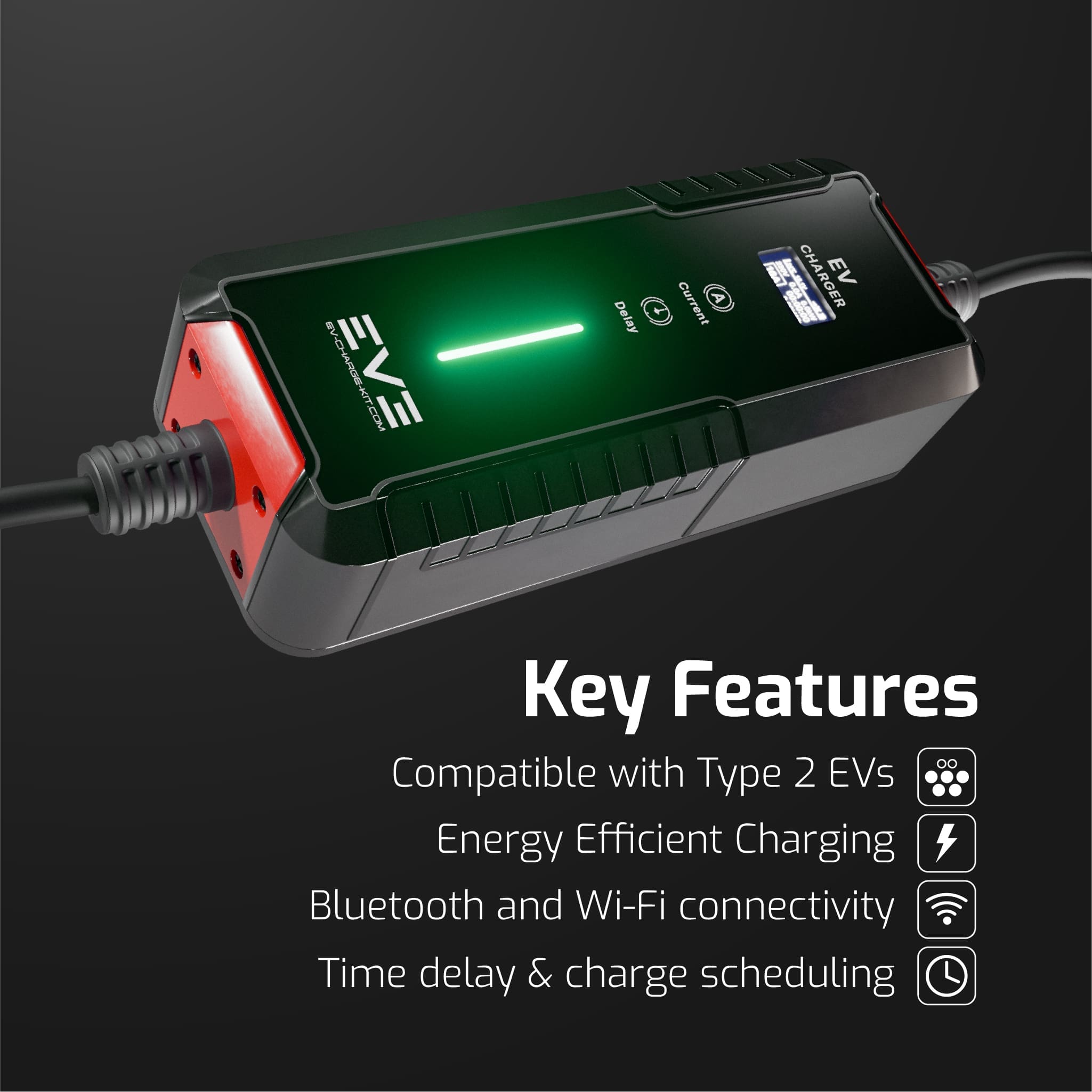 Série SMART16 – Chargeur EV de type 2 | Réglable de 6 A à 16 A, connectivité intelligente, résistant aux intempéries, prise UE