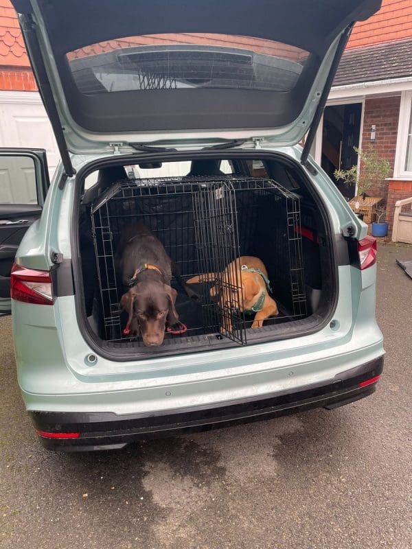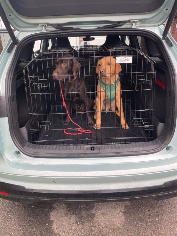 I bought a crate based on recommendation for a Å koda EnyAq which is a new car on the market. The 4×4 in Large to take two medium sized dogs. Joe from customer service recommended this crate. It works ! However the crate needed a piece of wood at the bottom of the rear seat in the boot tray section to make it fit and slightly raise it. Glad it works and have happy dogs now !
