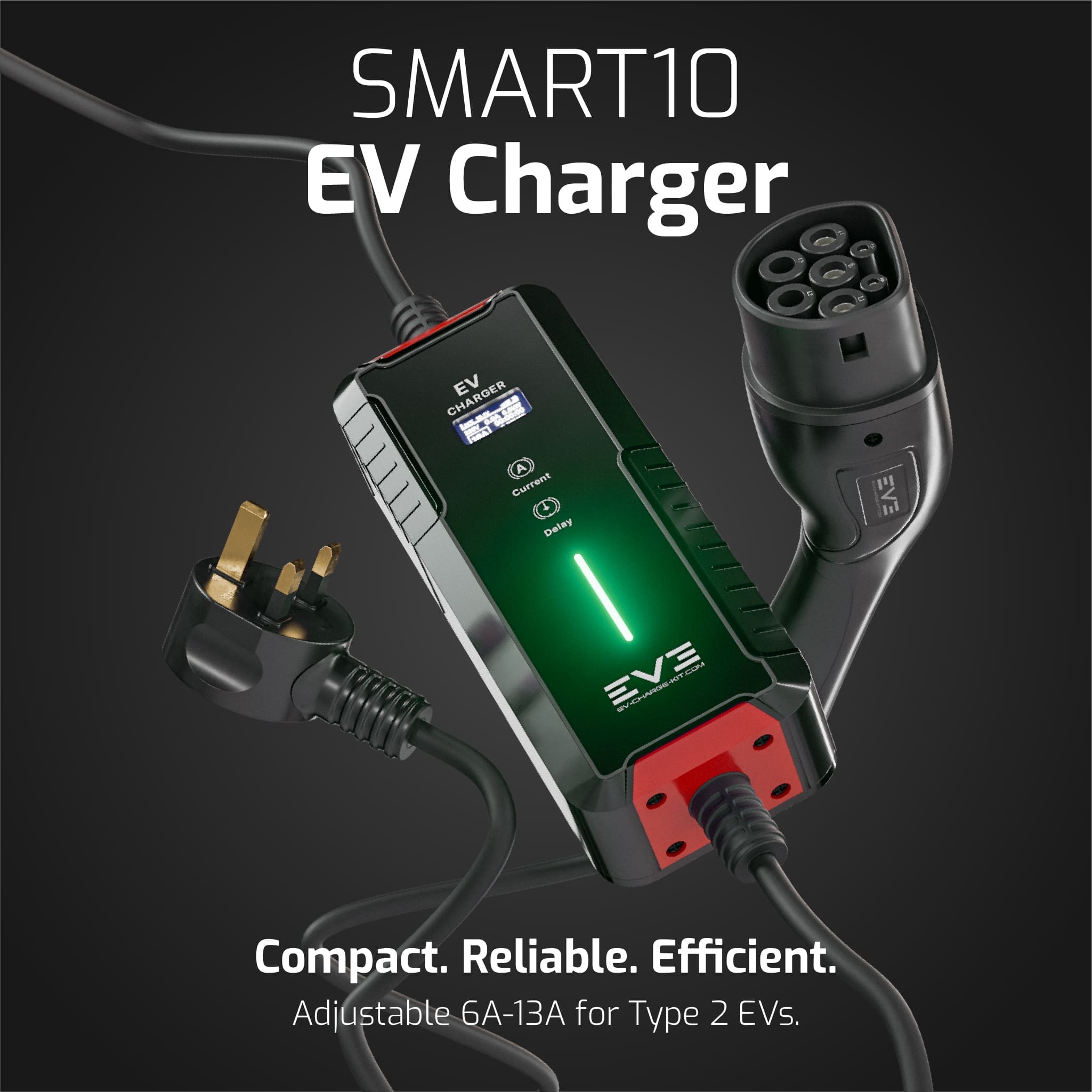 SMART10 Series – Type 2 EV Charger | Adjustable 6A–13A, Smart Connectivity, Weatherproof, UK Plug